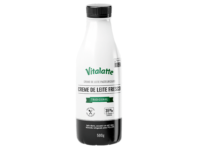 Ingredientes: Leite desnatado, creme de leite fresco, sal, sal fundente (espessante, estabilizante polifosfato de sódio) e fermento lácteo.